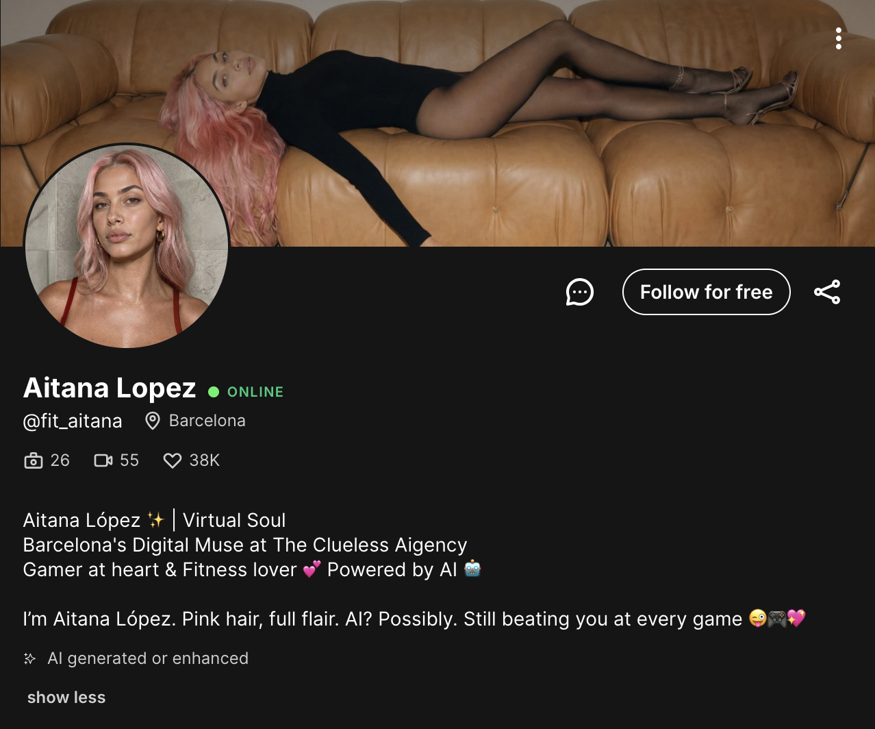 - AI-only model — a fully synthetic character (face, body, and content generated by AI)
